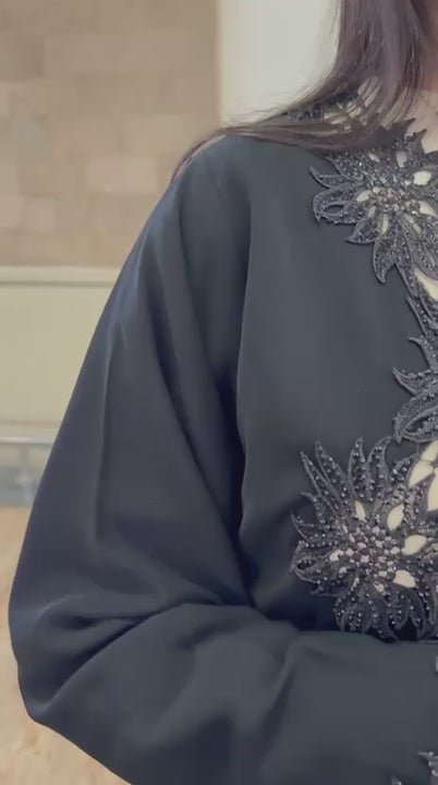 A classic black abaya that balances simplicity and sophistication—designed to be worn season after season.