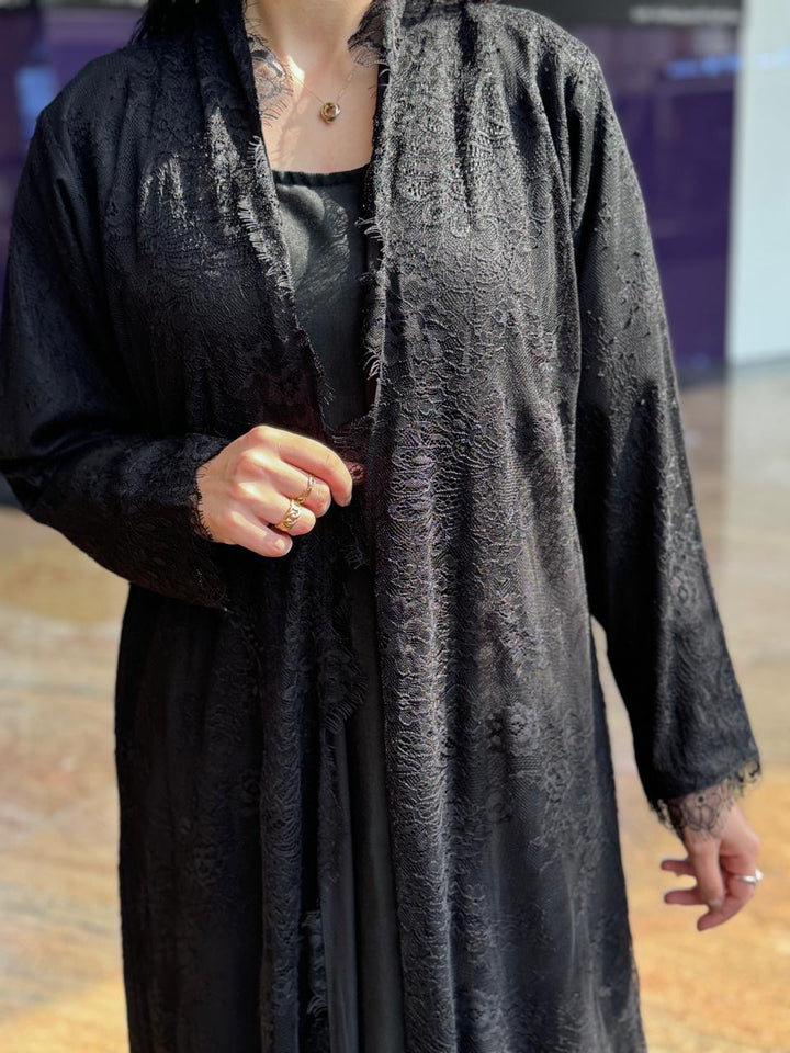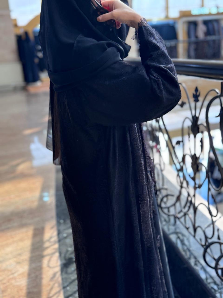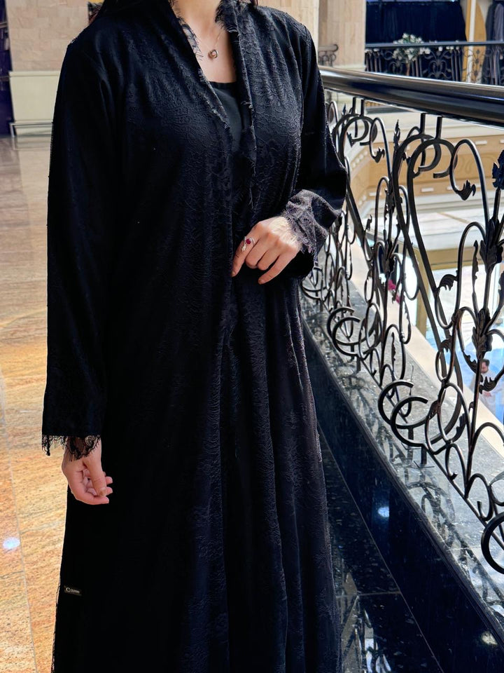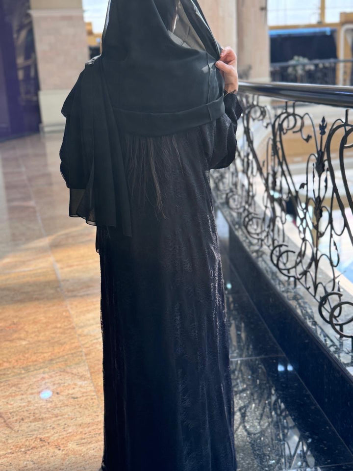 Full Dantill Lace Abaya with Nada Fabric Matching and Scarf