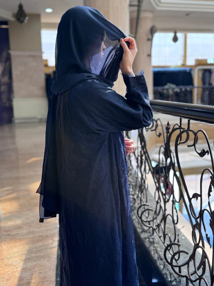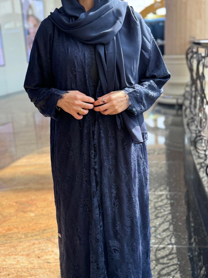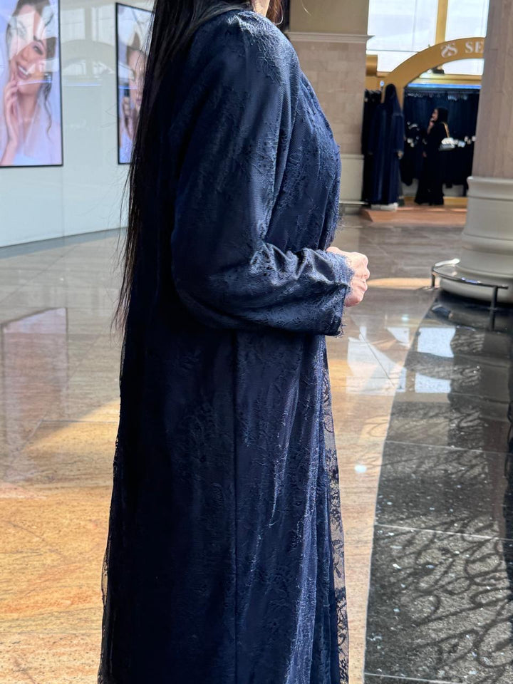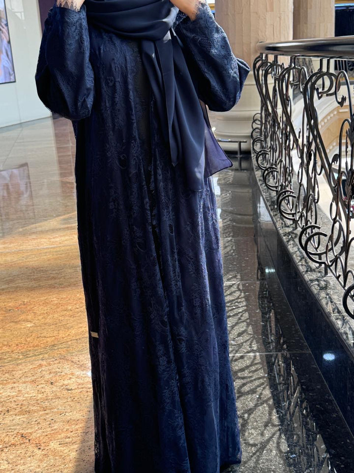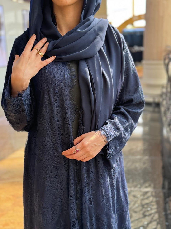Full Dantill Lace Abaya with Nada Fabric Matching and Scarf