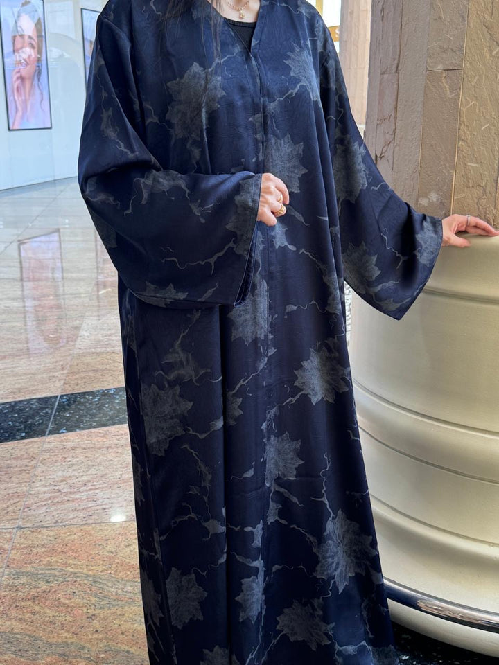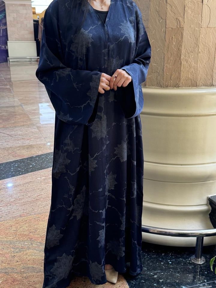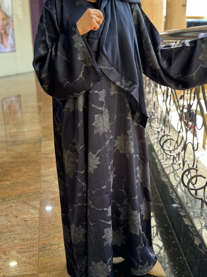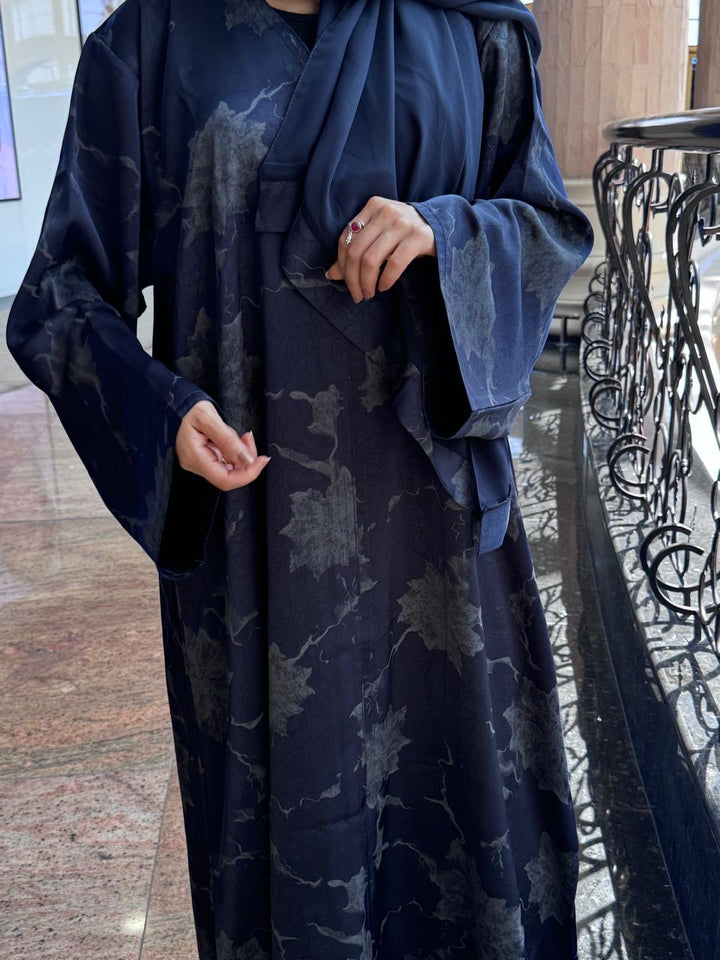 Step into the cozy elegance of fall with our Daily Blue Abaya, designed exclusively for the season’s effortless charm. This versatile piece features a soft white base adorned with delicate leaf-print patterns, echoing the serene beauty of autumn foliage.