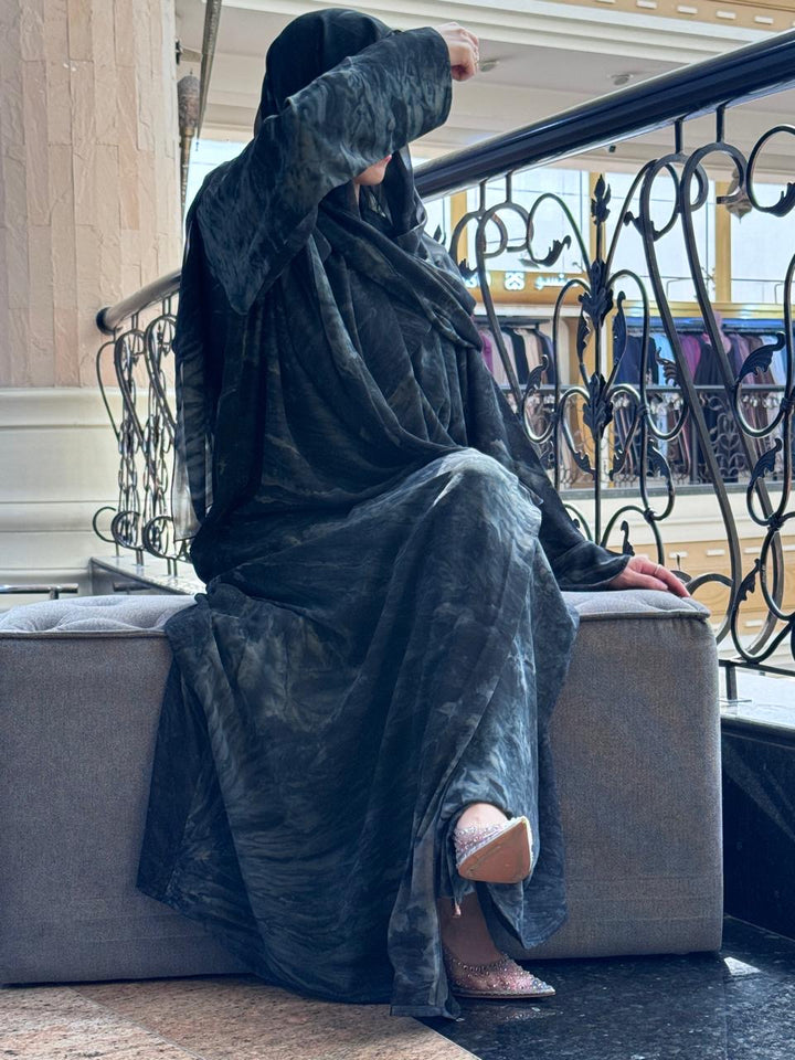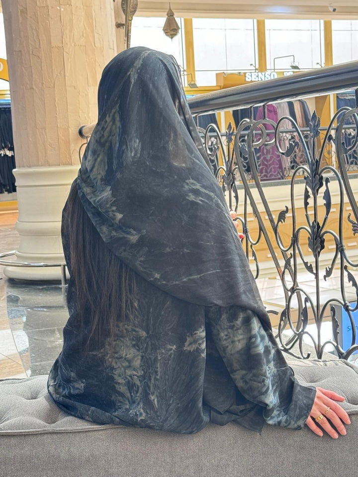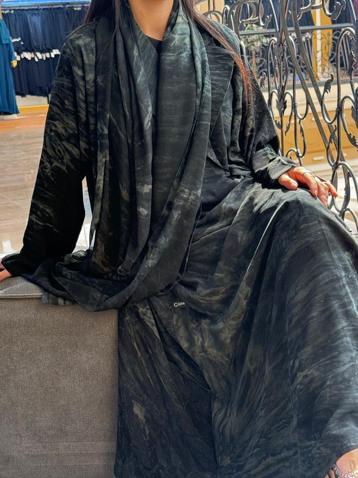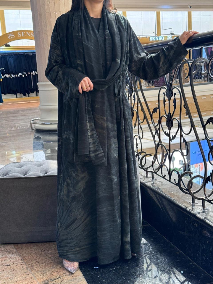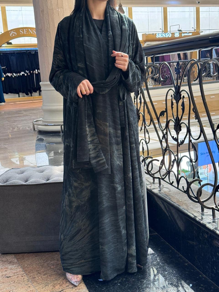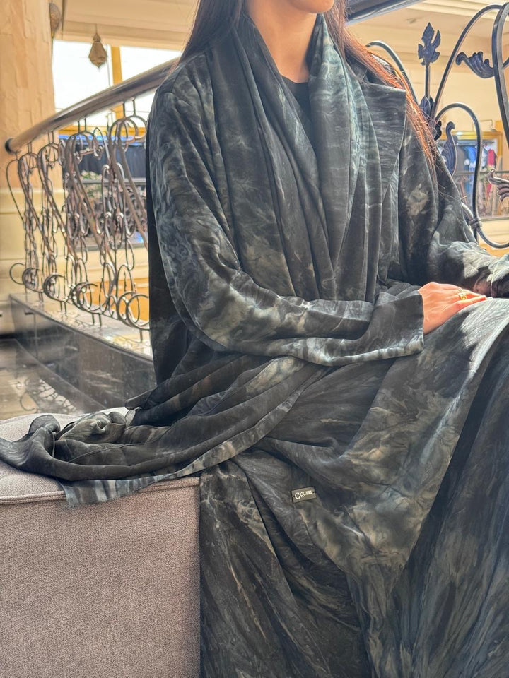The Green Chiffon robe will help you enter a realm of subdued elegance where luxury meets a mysterious forest hue. This lovely garment has a beautiful marbled design in rich