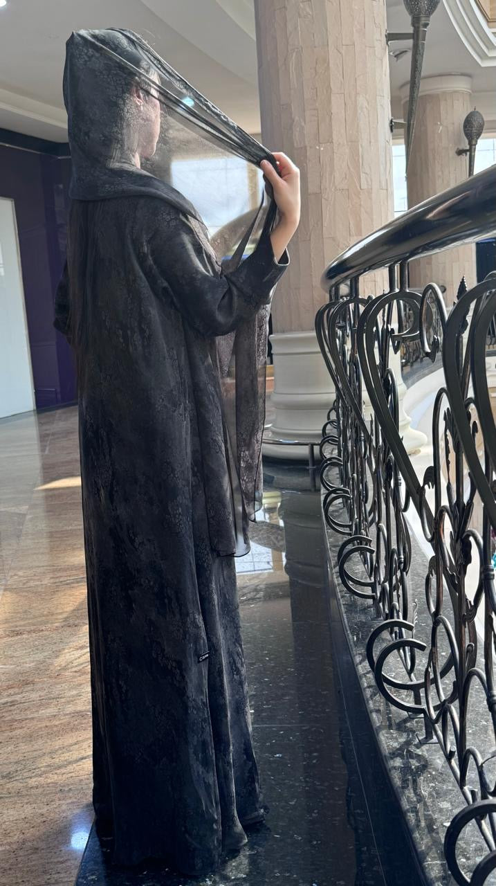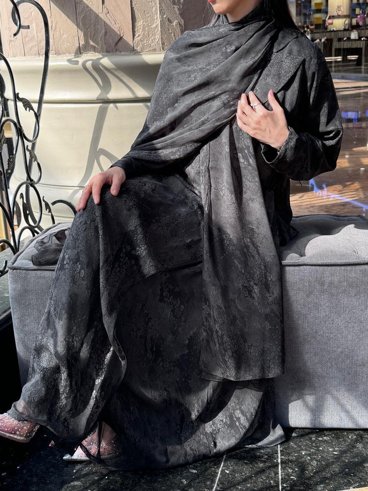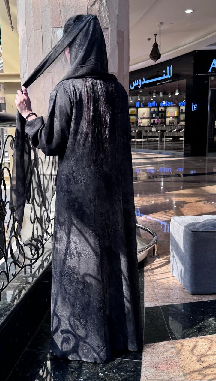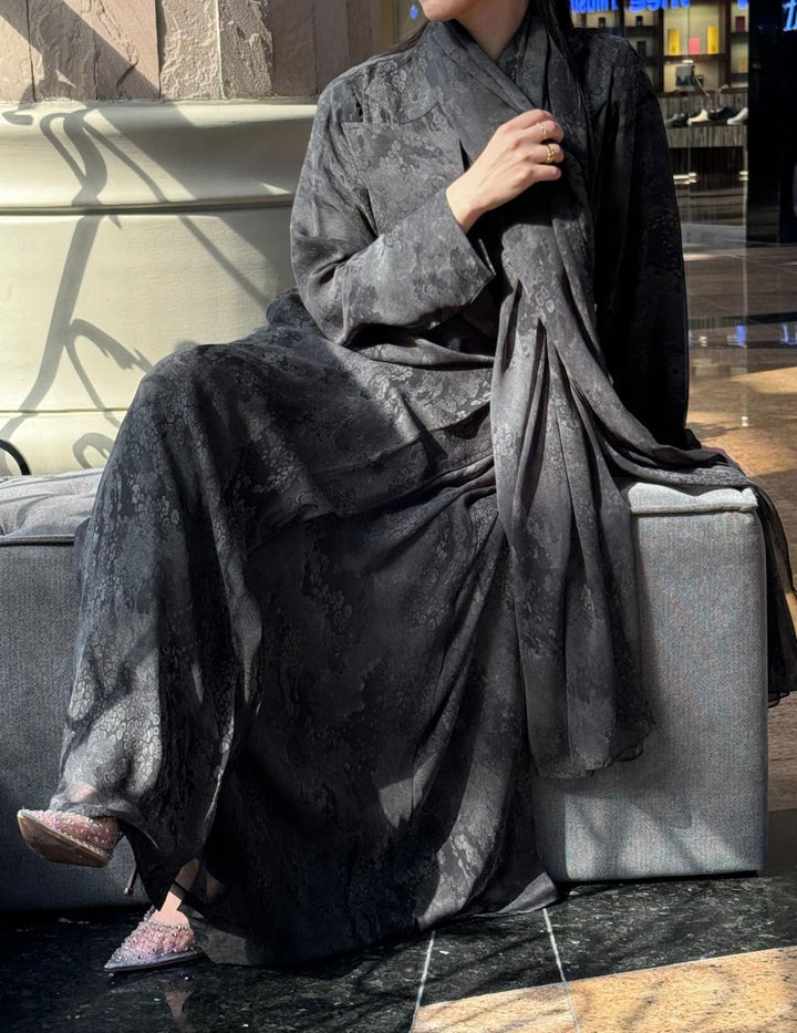 The Grey Chiffon robe will help you enter a realm of subdued elegance where luxury meets a mysterious forest hue. This lovely garment has a beautiful marbled design in rich